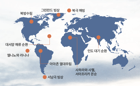 지구가 뜨거워지면서 전 세계에서는 이상 기후 현상이 일어나고 있다. 한국은 시간당 30mm만큼 비가 오면 집중호우라고 정의하는데, 최근 3~4년 사이 시간당 100mm 비가 자주 내렸다. 2025년 기준 북극 해빙은 2012년 이후로 가장 많이 녹았다. 2008년 영국 틴달기후연구센터 연구팀은 지구의 온도 상승으로 인해 기후의 ‘티핑 포인트’가 발생할 수 있는 요소를 공개했다. doi: 10.1073/pnas.0705414105 티핑 포인트는 어떤 현상이 서서히 진행되다가 임계점을 넘어 폭발하듯 변화하는 순간이다.