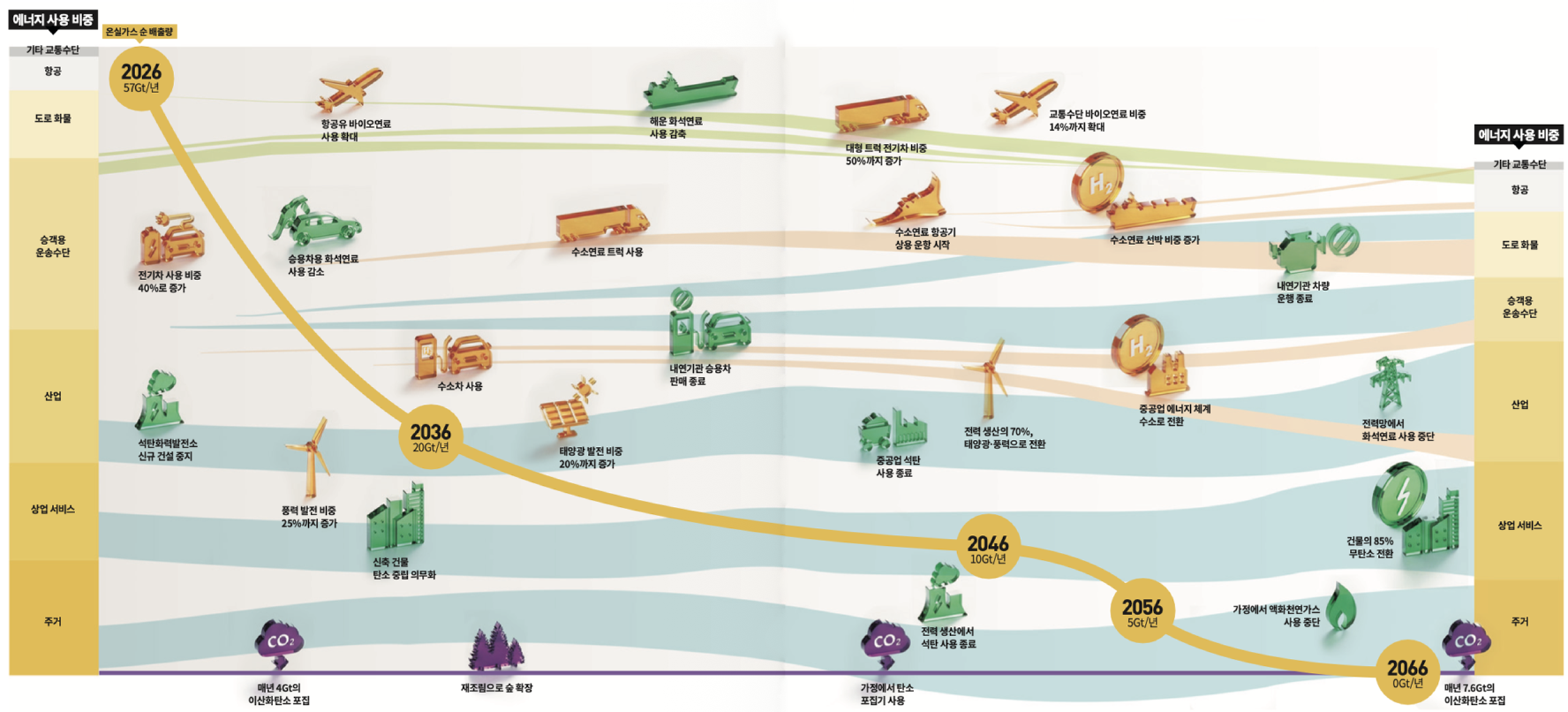 지금으로부터 40년이 지난 뒤, 넷제로 기술은 얼마나 발전하고 상용화는 어느 정도 돼 있을까. 40년 뒤 넷제로에 성공하려면 앞으로 에너지 로드맵을 어떻게 그려나가야 할지 알아보자.