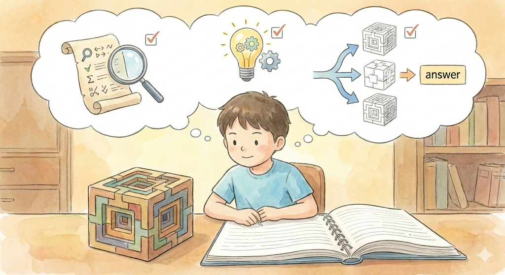 중학교 1~2학년의 사고력 문제 훈련은 정답을 맞히는 데 목적이 있지 않습니다. 오히려 다음과 같은 과정을 점검하는 데 초점을 두는 것이 바람직합니다.