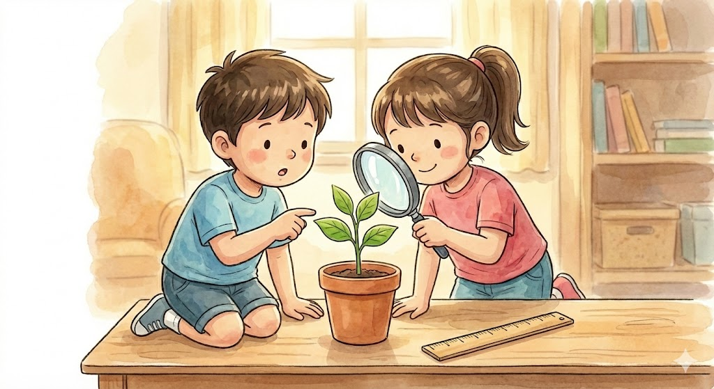 자연 현상이나 사물의 변화, 일상 속의 작은 차이에 주의를 기울이도록 도와주시는 것이 좋습니다. 날씨 변화, 식물의 성장, 물의 상태 변화 등을 함께 관찰하고 느낀 점을 말로 표현해 보게 하는 것만으로도 충분한 경험이 될 수 있습니다.