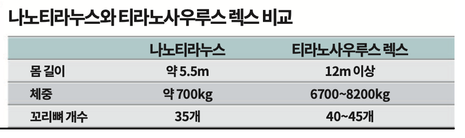 나노티라누스 화석을 활용해 티라노사우루스의 성장 과정이나 행동을 추정했던 연구가, 사실은 서로 다른 두 동물을 혼동한 결과였을 수 있다. 백악기 말기, 소행성 충돌이 있기 전에 지구에는 여러 종의 티라노사우루스류가 함께 살고 있었던 것이다.