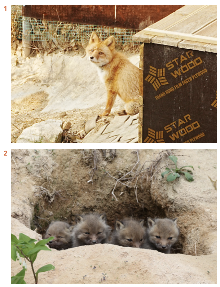 안 주임은 “여우가 밭에 땅을 팠다고 제보전화를 주시는 경우가 있다”고 했다. “여우가 슬리퍼를 물고 갔다는 제보도 있더라고요. 복원 초기부터 여우가 민가에 피해를 불러올 거라는 우려가 많았습니다. 이런 우려를 경감하기 위해 주민지원사업과 피해보상 등 다양한 활동을 펼치고 있습니다. 여우를 너그러이 받아들여 주시면 좋겠어요. 공존하는 문화가 확산되면 좋겠다는 마음입니다.”