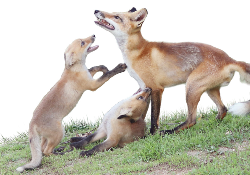 간혹 ‘동네 할아버지 여우’가 부부의 양육에 도움을 주기도 한다. “늙은 수컷이 옆집에서 아기를 낳았다 하면 먹이를 문(굴) 앞에 갖다 놔주는 모습도 관찰됐어요. 혈연관계가 아닌데도 그런 행동을 보이는 수컷들이 있더라고요. 아빠 여우보다도 옆집 할아버지 여우가 더 새끼를 열심히 지켜서, 사람이 접근하면 새끼를 물어다가 다른 곳에 숨겨주는 모습도 보이고요. 무리 생활을 하는 동물이 아닌데도, 서로 새끼를 지켜주는 모습이 신기하죠. 저희도 여우를 관리하면서 새롭게 배우는 모습이 굉장히 많습니다.”
