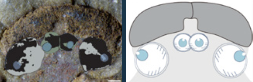 네, 정확히는 송과체 복합체라는 구조입니다. 양쪽에 눈 2개, 그리고 머리 위쪽에 송과체와 부송과체로 2개 더 도합 4개의 눈이 있었어요. 연구팀은 이게 척추동물의 조상 형질이라고 분석했습니다. 그러니까 원래 우리 척추동물의 기본 설정은 눈이 4개였다는 거죠.