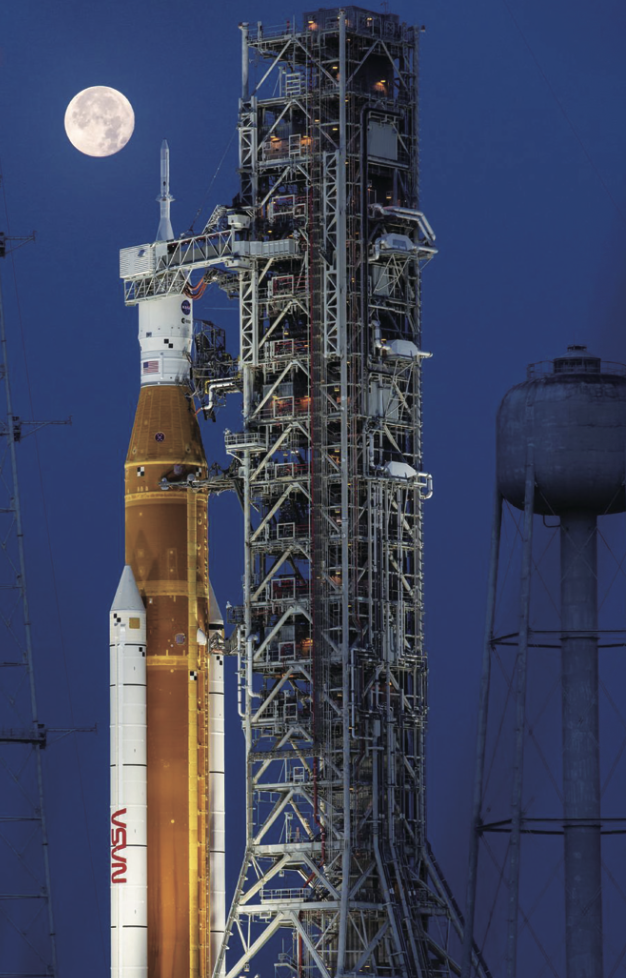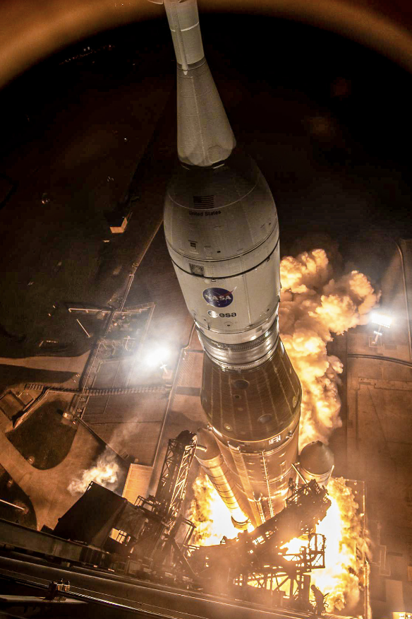 2022년 11월, 아르테미스 1호 미션을 위해 미국 케네디 우주센터에서 SLS가 발사되는 모습.