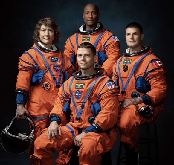 아르테미스 2호에 탑승할 우주비행사(왼쪽부터 시계 방향으로 임무 대원 크리스티나 코크, 조종사 빅터 글로버, 임무 대원 제레미 한센, 지휘관 리드 와이즈먼). 아르테미스 계획에서는 유색 인종과 여성, 미국 외 국적인(캐나다)이 최초로 달을 향한다.