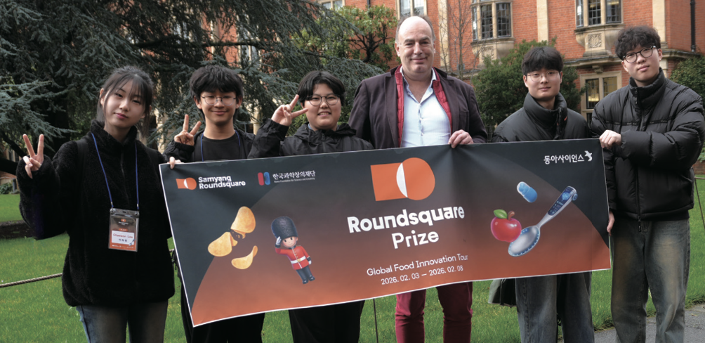 스펜스 교수의 초대로 영국까지 날아간 청소년들은 2025년 개최된 ‘삼양라운드스퀘어 프라이즈’의 중등부, 고등부 대상 수상자들이었습니다. 삼양라운드스퀘어 프라이즈는 청소년들의 푸드 이노베이션 아이디어를 겨루는 대회입니다. 식품(food)과 과학의 결합을 통해 세상을 놀라게 할 기발한 상상들로 전국 각지 학생들이 치열하게 경쟁했죠.