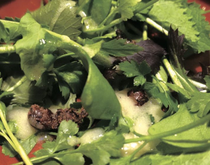 2월 6일 저녁, 워튼 키친 가든(Worton Kitchen Garden)에서 먹은 샐러드 ‘정원에서 캐온 잡초’에는 남미에서 온 개미가 들어있다.