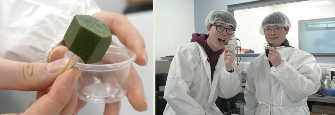 스피룰리나에서 나온 단백질은 맛있었냐고요? “미슐랭인데요!” 실험실에서 탄성이 터져 나왔습니다. 특히 스피룰리나에서 추출한 파란 색소를 넣은 젤리는 대호평을 받았습니다. “맛있었어요! 편의점에서 파는 젤리보다 맛있는데, 건강하기까지 하다니 인상적이에요.” M.S.G 팀 이채원(구성중 2) 양이 활기찬 목소리로 말했습니다.