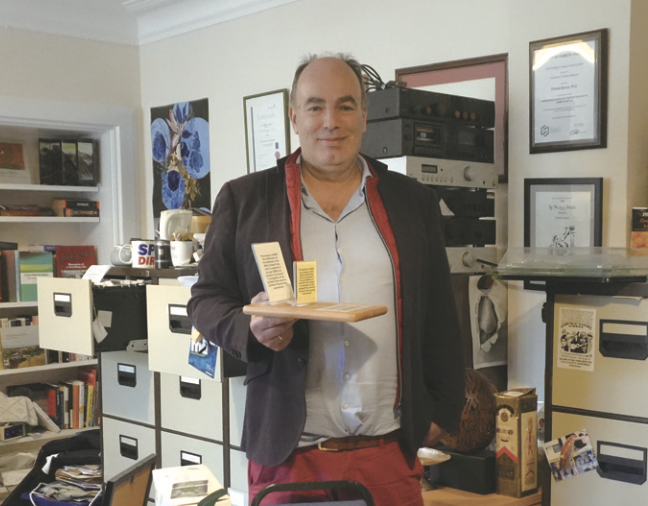 2월 6일, 찰스 스펜스 영국 옥스퍼드대 교수를 만났다. 그의 연구실에는 향료를 뿌리면 원하는 맛을 느낄 수 있게 되는 포크, 샴페인의 거품 터지는 소리를 더 잘 듣게 해주는 깔때기 등 다채로운 수집품이 전시돼 있었다. 사진은 이그노벨상 트로피를 들고 있는 스펜스 교수.