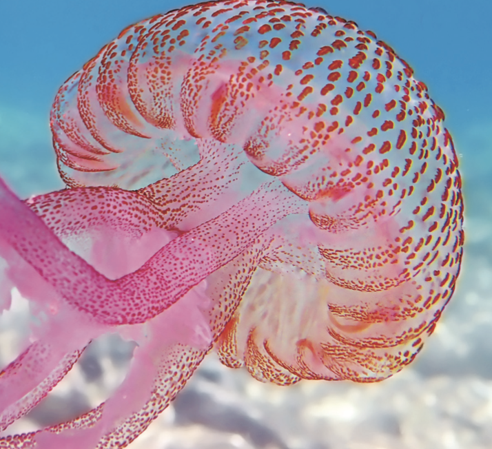 생김새도, 살아가는 방식도 다양한 해파리다. 특히나 애정이 가는 해파리를 한 종 정도 마음에 품고 살아가도 좋겠다. 취재를 하며 기자에게 가장 인상 깊게 다가온 해파리는 2026년 1월 5일 아르헨티나 해안의 열수 분출구 인근에서 발견된 거대 해파리 ‘스티기오메두사 기간테아(Stygiomedusa gigantea)’다. 미국 슈미트해양연구소가 해저 253m 지점에서 발견했는데, 우산 지름은 1m, 구완 길이는 10m 이상이었다고 한다. 스티기오메두사 기간티아는 심해에서 살아가는 종이다. 1899년 최초 발견된 후 스티기오메두사 기간테아를 촬영한 사례는 단 12건뿐이다.