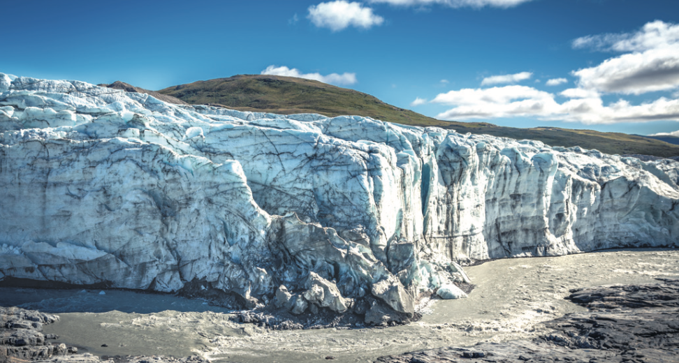 그린란드 남서쪽 끝에 위치한 러셀 빙하. 높이 60m에 달하는 거대한 빙하는 근처 캉에흘루수아크 공항이 있어 과학 연구자는 물론 관광객이 많이 찾는 곳이다.