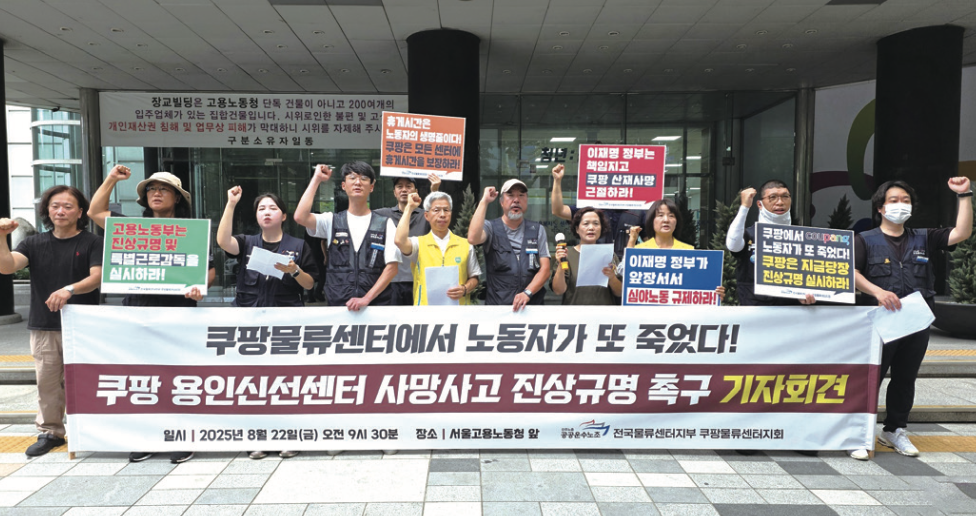 한편, 2025년 한 해 동안 쿠팡의 물류센터와 택배노동자 8명의 죽음이 세상에 알려졌다. 그중 6명이 심야 근무자였다. 전국민주노동조합총연맹(민주노총) 전국택배노동조합(택배노조)은 2025년 12월 2일 이 내용을 담은 기자회견문에서 “쿠팡은 자신들이 설계한 물류 배송 시스템이 구조적으로 과로를 낳는다는 불편한 진실을 인정해야 한다”고 했다. 그러면서 “구조 개선에 진정성을 보이지 않는다면 쿠팡에서의 과로사는 멈추지 않을 것”이라고 했다.