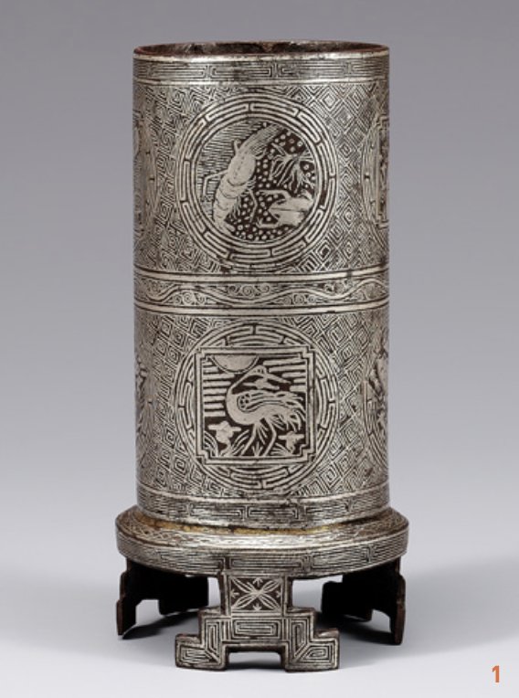1 은은 화폐이자 사치재로 중요한 역할을 한 귀금속이었다. 사진은 국립중앙박물관에서 보관중인 조선시대 철제 은상감필통. 철로 만든 필통에 은으로 무늬를 입사했다.