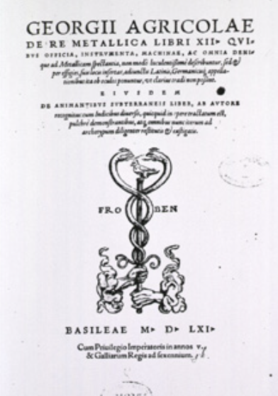 독일의 인문주의자, 게오르기우스 아그리콜라가 1556년 출판한 책 ‘금속에 관하여(De re metallica)’