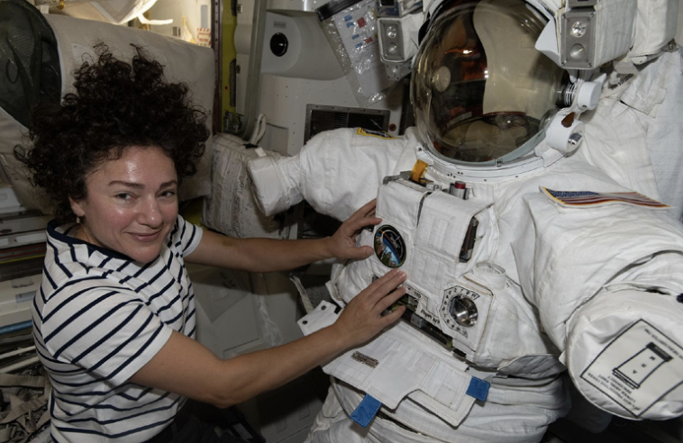 미국항공우주국(NASA) 소속 우주비행사가 국제우주정거장(ISS)에서 우주복을 점검하는 모습. 이들은 한번 우주로 나가면 짧게는 몇 주에서 길게는 최대 1년 이상 머무른다.