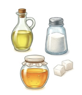 일반적으로 2~3가지 성분이 함유된 식품. 소금, 설탕 등 2군 물질을 첨가한 단순 가공식품.