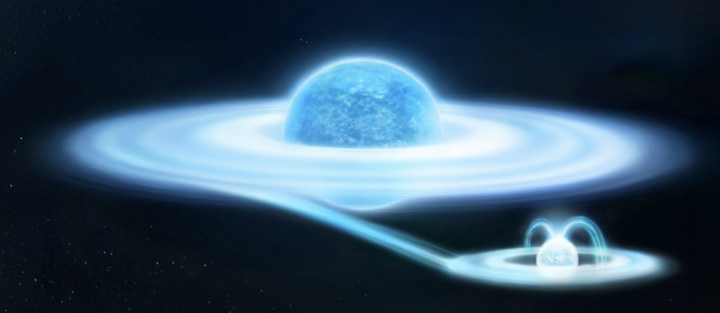 바로 γ Cas 계열의 별은 백색왜성이 짝을 이룬 상태일 가능성이 높단 거예요. 이렇게 두 별이 공통적인 질량 중심을 가지고 공전하는 항성계를 쌍성계라고 불러요. 연구팀은 X선 신호가 γ Cas 자체의 공전 궤도가 아니라 보이지 않는 동반성의 공전 궤도를 따라 변한다는 사실을 확인했죠. 즉 X선이 별 옆에 있는 백색왜성이 주변 물질을 빨아들이면서 뜨거워져 강한 X선을 방출한다는 거예요. γ Cas가 쌍성계의 일원일 수 있단 예측은 오래전부터 있었지만, 이번 관측으로 처음 확인됐던 거죠. 역시 물리 법칙을 뛰어넘는 말도 안 되는 일은 없는 거였어요!