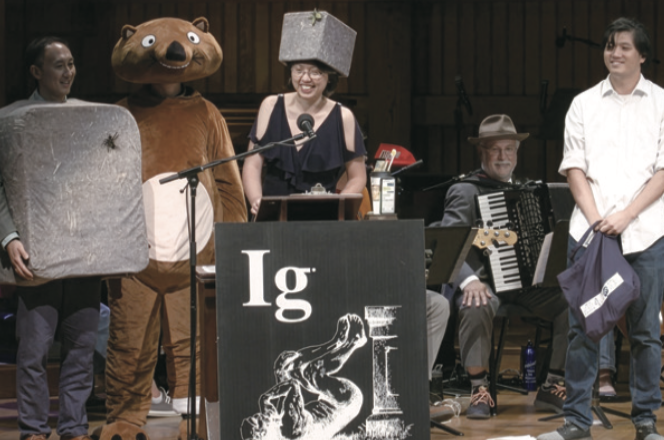 2019년, 패트리샤 양 당시 미국 조지아공대 연구원이 동료들과 함께 이그노벨상을 받는 모습. 웜뱃의 똥에 관한 연구로 이그노벨 물리학상을 받았다.