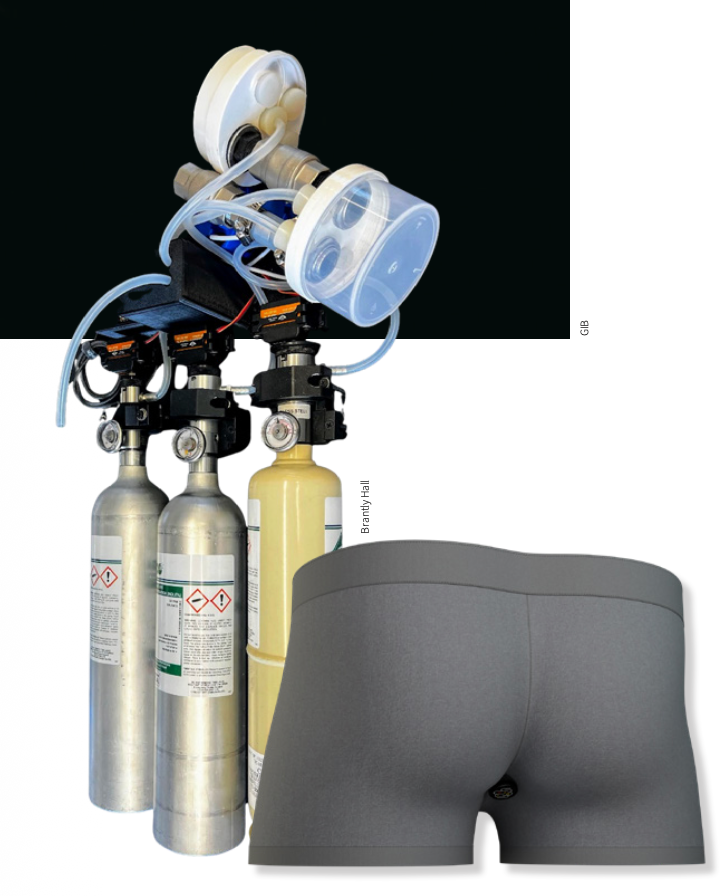 브렌틀리 홀 교수팀이 제작한 스마트 팬티. 홀 교수는 실험 전 직접 수소 가스를 ‘분출’해 보며 팬티 성능을 시험했다.